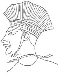 The Tokhari, we have seen, are represented as taken prisoners, in a sea-fight with Rhamses III., of the twentieth dynasty, about the thirteenth century B.C. They are probably the Tochari of Strabo. The accompanying figure represents one of these people as they appear upon the Egyptian monuments. (See Nott and Gliddon's "Types of Mankind," p. 108.) Here we have, not an inhabitant of Atlantis, but probably a representative of one of the mixed races that sprung from its colonies.