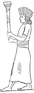 They were troublesome to the nations of the East for many centuries; for in 700 B.C. we find them depicted on the Assyrian monuments. This figure represents one of the Tokhari of the time of Sennacherib. It will be observed that the headdress (apparently of feathers) is the same in both portraits, al, though separated by a period of six hundred years.