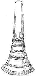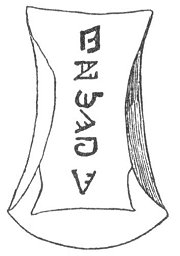 We give on page 258 a representation of a bronze dagger found in Ireland, a strongly-made weapon. The cut below it represents the only implement of the Bronze Age yet found containing an inscription. It has been impossible to decipher it, or even to tell to what group of languages its alphabet belongs.