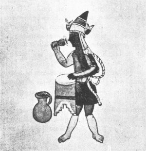 Priest of Xippe Totec, Drinking and Playing on a Drum