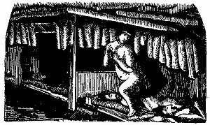 One night he succeeded in getting down without anybody awaking. In order, however, to make quite sure that they were all fast asleep, he again stepped up on the ledge. On finding that the noise had awakened nobody, p. 246 he jumped down on the floor above the entrance of the room, and gliding out noiselessly, he went and dressed himself in his tight clothes, which had been hidden beneath the boat. Having also put on his outer coat, which was hanging on the poles outside the house, he took hold of his spear, and climbed the low roof of the house, and sallied forth in the opposite direction he wanted to take, making circular tracks in the snow as he went along. After a while he jumped and crossed the little promontory, and got down on the ice, which stretched away as far as his own country. There he again made large round tracks, always leaping from one side to the other, so that his family should not be able to be guided by his footmarks. Proceeding on his way, he at length reached a coast with a steep ascent and high slope, covered with heath. Having once more formed plenty of round circles on the ice, he jumped ashore and climbed an edge of the rock, where he stuffed his outer coat well with moss, and again leaped down. On the ice he built a snow-hut, and placed the stuffed coat inside it, spear in hand, with the back turned outwards, that it might resemble a living man. After this he again went back, and climbed the steep rock, awaiting the arrival of the pursuers. At sunrise several people who had come out in search of him were to be seen on the ice, sometimes single, sometimes making joint efforts to find the track. At last, halting at the snow-house, they approached it cautiously; but no sooner had the foremost detected the figure in the doorway than he thrust his spear straight at it, and Nivnitak heard them call out, "Well, well, we ought to have kept a better watch upon him while he was with us, showing well enough that he was not a real man; but anyhow we have done with him now;" and then they returned, satisfied that they had killed him. When they had quite disappeared, Nivnitak again leapt down the rocks. p. 247 The sun was then high in the heavens; but before it had quite set, he reached the shore of his own country, and found his grandchildren, who had totally given him up, prospering and doing well. In the spring-time, when the ice had vanished, he got a fancy to go and see his native place; but having arrived there, he determined