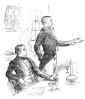 Leaving, then, the race-ordinary (that little Scotchman with his airs has carried us the deuce knows how far out of the way), I came home just as the gentlemen of the race were beginning to "mix," that is, to forsake the wine for the punch. At the lodgings I found my five companions of the morning with a bottle of that wonderful whiskey of which they spoke; and which they had agreed to exchange against a bundle of Liverpool cigars: so we discussed them, the whiskey, and other topics in common. Now there is no need to violate the sanctity of private life, and report the conversation which took place, the songs which were sung, the speeches which were made, and the other remarkable events of the evening. Suffice it to say, that the English traveller gradually becomes accustomed to whiskey-punch (in moderation of course), and finds the beverage very agreeable at Killarney; against which I recollect a protest was entered at Dublin.