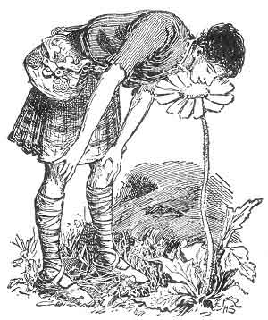 Well, he was just going to give up the search in despair, when he espied a very handsome flower growing beside a rock at the further end, and thought he would go and have a look at it before telling his brothers of his unprofitable search. And the plant was a really pretty one. It had a splendid yellow flower like a great gowan growing on the top of a stout stalk which sprang from a bunch of large green leaves below. He certainly never had seen the like before, and he stood there admiring it very much.