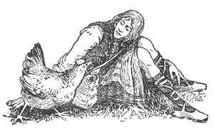 "WHAT DO YOU THINK OF THAT?" SAID THE FOWL.So Dougald put the Thunder-fowl in his wallet, and her head looked out through a hole in the top, and, quite pleased with his discovery, he went to seek his brothers.