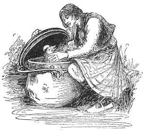 So he said aloud, "Broth, indeed! Well, cook it and serve it; but if you fail, and it proves not savoury to my taste, cook or no cook, off goes your head in a trice," and he scraped and scrubbed a long dirk