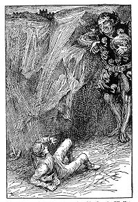 "Come in and sit down," said the giant, "and I will make it worth your while to tell me how I can escape the notice of your master; for he seems to be an irascible kind of fellow, and I should not like a