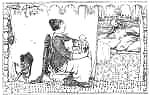 Now next day happened to be market-day, and as Dame Goody had been away from home, she wanted many things in the house, and trudged off to get them at the market. As she was buying the things she wanted, who should she see but the squinny-eyed old fellow who had taken her on the coal-black horse. And what do you think he was doing? Why he went about from stall to stall taking things from each, here some fruit, and there some eggs, and so on; and no one seemed to take any notice.