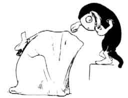 The next night the Hobyahs took down the bag and knocked at the top of it, and said 'Look me, look me!' and when they opened the bag the big dog jumped out and ate them all up; so there are no Hobyahs now.