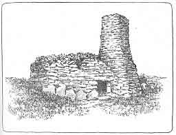 The natives have a superstition to the effect that any one who walks over these rocks will be afflicted with sore feet, and we received many solemn warnings in regard to it. If there is any foundation for it at all it is probably due to a succulent vine that grows here, coming in contact with the wounds caused by the sharp rocks. A short distance farther on stands a round tower 12 feet in diameter and 20 feet high (Fig. 9), said to have been erected as a lookout station from whence the movements of turtles could be watched. We found here, as well as under every other pile of stones of ally description on the island, tombs and receptacles for the dead, all filled with human remains in various stages or decay, from freshly interred bodies to the bones that crumbled into dust upon exposure to the air. The entire island seems to be one vast necropolis, and the platforms along the sea-coast appear to have been the favorite burial places in all ages. Natural caves were utilized as places of deposit for the dead.