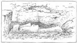 intended. They stand well down towards the bottom of the slope, and are more or less buried in the earth by the washings from above, as shown in Figs. 13 and 14.