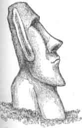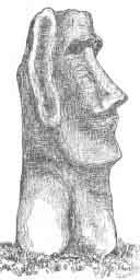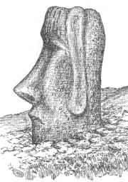 outline drawing to the finished statue ready to be cut loose from its original rock and launched down the steep incline. The modus operandi