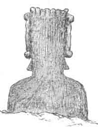 Another excellent specimen (Fig. 16) of these remarkable figures stands near the last mentioned and shows tool-marks around the neck as though an effort had been made to cut the head off. The natives call this "hiara" and have a tradition to the effect that it belonged to a powerful clan who were finally defeated in war, and that their enemies had made an attempt to destroy the statue by cutting off the head. The story may be based only upon the mutilation, but the chances are that it is founded upon fact.