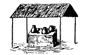 An altar to OYATA at OKPWEBO, made of clay surmounted with native pottery.