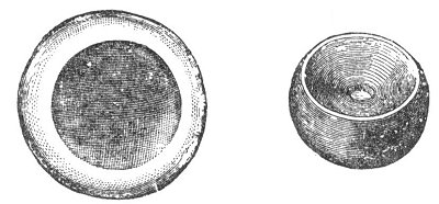 It will be seen that these vases could scarcely stand upright unsupported; and we find that the ancient inhabitants of Switzerland had circles or rings of baked earth in which they placed them when in use, as in the annexed figure. The Mound Builders used the same contrivance.