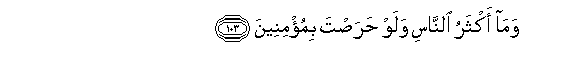 103. Wama aktharu alnnasi walaw harasta bimu/mineena