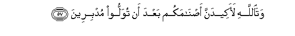 57. WataAllahi laakeedanna asnamakum baAAda an tuwalloo mudbireena