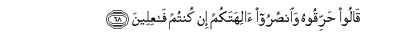 68. Qaloo harriqoohu waonsuroo alihatakum in kuntum faAAileena