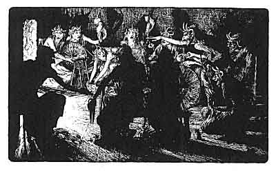 And so the knocks went on, and the call was heard, and the witches entered, until at last twelve women sat round the fire--the first with one horn, the last with twelve horns.