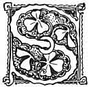 [paragraph continues] They pledged their faith that they would not harm her, and a message was sent to her. So Olwen came, clothed in a robe of flame-coloured silk, and with a collar of ruddy gold, in which were emeralds and rubies, about her neck. More golden was her hair than the flower of the broom, and her skin was whiter than the foam of the wave, and fairer were her hands and her fingers than the blossoms of the wood anemone amidst the spray of the meadow fountain. Brighter were her glances than those of a falcon; her bosom was more snowy than the breast of the white swan, her cheek redder than the reddest roses. Whoso beheld was filled with her love. Four white trefoils sprang up wherever she trod, and therefore was she called Olwen.