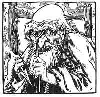 "A cursed ungentle son-in-law, truly. As long as I remain alive my eyesight will be the worse. Whenever I go against the wind my eyes will water, and peradventure my head will burn, and I shall have a giddiness every new moon. Cursed be the fire in which it was forged. Like the bite of a mad dog is the stroke of this poisoned iron."