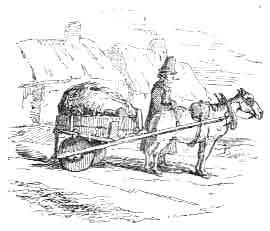 Some time before we came to it, we saw the long line of mist that lay above the Bann, and coming through a dirty suburb of low cottages, passed down a broad street with gas and lamps in it (thank heaven, there are people once more!), and at length drove up in state, across a gas pipe in a marketplace, before an hotel in the town of Coleraine famous for linen and for Beautiful Kitty who must be old and ugly now, for it's a good five and thirty years since she broke her pitcher according to Mr Moore's account of her. The scene as entered the Diamond was rather a lively one--a score of little stalls were brilliant with lights; the people were thronging in the place making their Saturday bargains; the town clock began to toll nine; and hark! faithful to a minute, the horn of the Derry mail was heard tootooing, and four commercial gentlemen, with Scotch accents, rushed into the hotel at the same time with myself.