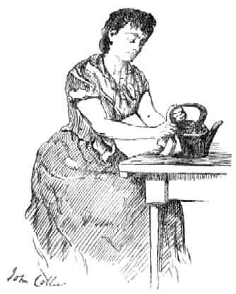 * The late Mr. Pope represents Camilla as "scouring the plain" an absurd and useless task. Peggy's occupation with the kettle is more simple and noble. The second line of this verse (wheref the author scorns to deny an obligaion) is from the celebrated "Frithiof" of Esaias Tigner. A maiden is serving warriers to drink, and is standing by a sheld--"Und die Runde des Schildes ward wie das Magdalein roth"--perhaps the best thing in both poems.