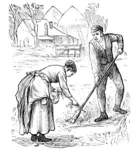 Next day, on going to the potato-grounds, he found the whole fields swarming with people; the whole crop was out of the ground, and again under it, pitted and covered, and the people gone, in a few hours. It was as if the fairies that we read of in the Irish legends, as coming to the aid of good people and helping them in their labours, had taken a liking to this good landlord, and taken in his harvest for him. Mr. Crofton, who knew who his helpers had been, sent the steward to pay them their day's wages, and to thank them at the same time for having come to help him at a time when their labour was so useful to him. One and all refused a penny; and their spokesman said, "They wished they could do more for the likes of him or his family." I have heard of many conspiracies in this country; is not this one as worthy to be told as any of them?