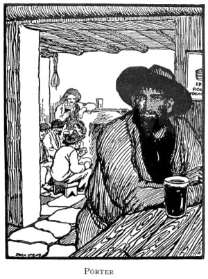 This is the haunt so much dreaded by the women of the other islands, where the men linger with their money till they go out at last with reeling steps and are lost in the sound. Without this background of empty curaghs, and bodies floating naked with the tide, there would be something almost absurd about the dissipation of this simple place where men sit, evening after evening, drinking bad whisky and porter, and talking with endless repetition of fishing, and kelp, and of the sorrows of purgatory.