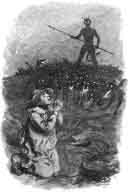 A similar story is related of a man who lived at a village near Aylesbury, in Buckinghamshire. This man was accustomed to go every morning and night to milk his cows in a field, which was some distance from the village. To shorten his walk, he often crossed over a neighbour's field, and passed through a gap in the hedge; but one night, on approaching the gap, he found it occupied by a large, black,