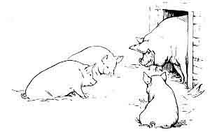 THERE was an old sow with three little pigs, and as she had not enough to keep them, she sent them out to seek their fortune. The first that went off met a man with a bundle of straw, and said to him: