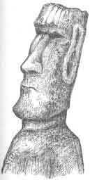 outline drawing to the finished statue ready to be cut loose from its original rock and launched down the steep incline. The modus operandi