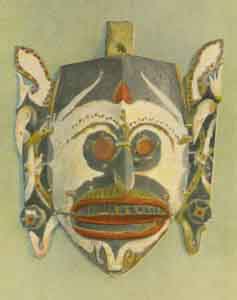 Wooden mask representing a spirit or ghost. Worn in dances by the tribes of Sarawak and central Borneo. Peabody Museum, Cambridge, Massachusetts.