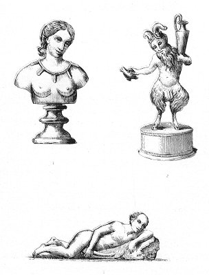 It is to be presumed that this little figure was one of the household gods of a Roman dwelling: his large horns and immoderate phallus served to keep off sorceries. Let us remark in passing that, whatever may have been said on the subject, the custom of insulting husbands deceived by their wives by imagining them to have horns is merely derived from that very ancient, but yet very false opinion, that of the two men he is the happier whose wife is unfaithful; for the need she experiences, at every moment of the day, to lull to sleep the suspicions of him whom she is outraging, induces her incessantly to feign sweetness, resignation-all the virtues, in short, which she